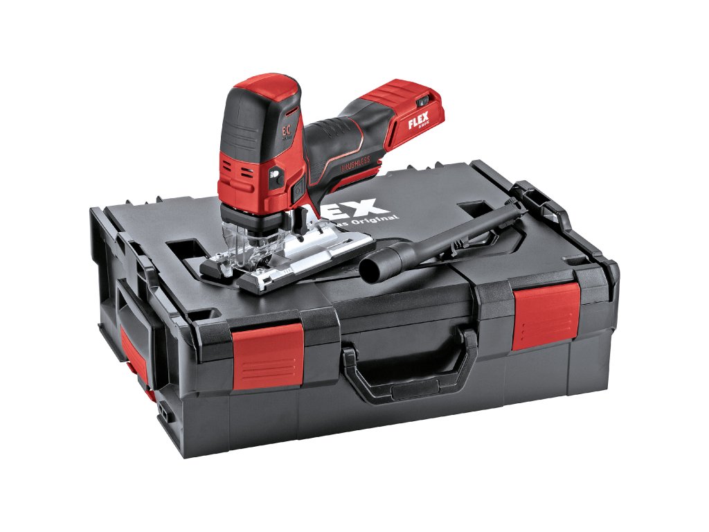 Aku-přímočará pila 18.0 V, Nová generace bezuhlíkových motorů s vysokým stupněm účinnosti a výkonu, Plynulé nastavení rychlosti řezu pomocí poti-kolečka s automatikou náběhu v postavení „A“, Elektronický spínač oboustranně použitelný, Beznástrojová výměna pilových plátků s rychloupínacím systémem a funkcí vyhození plátku, Excentrický zdvih: 4-stupňový pro vysoký výkon řezání, Dvojité vedení pilového plátku v rolnách pro precizní řezy v přesných úhlech, Volný pohled do řezu s integrovanou funkcí vyfoukávání, Perfektní ergonomie optimálně zafixovanými povrchy SoftGrip, Komfortní řezání bez vibrací, Nastavení sklonu pily pro řezy v úkosu do 45°, 0-zarážka. Pro řezání blízko u okrajů se pila dá posunout dozadu., Stabilní základová deska s odnímatelným kluzným segmentem z plastu na ochranu citlivých povrchů, Electronic Management System (EMS) chrání stroj, prodlužuje životnost a zvyšuje efektivitu, S rozběhovou automatikou, ochranou proti přetížení, Odsávací hubice Ø 27 mm, pro čistotu na pracovišti a volný pohled na místo řezu, Kryt proti vytrhávání snímatelný, pro řezy bez vytrhávání materiálu a pro vedení pilového listu, Integrované LED-diody pro optimální osvětlení pracovního prostoru., LED – ukazatel stavu kapacity akumulátoru, FLEX Aku-systém: provoz se všemi FLEX 18 V akumulátory. Dodání bez aku a dobíjecího zařízeníDoplňkové parametry