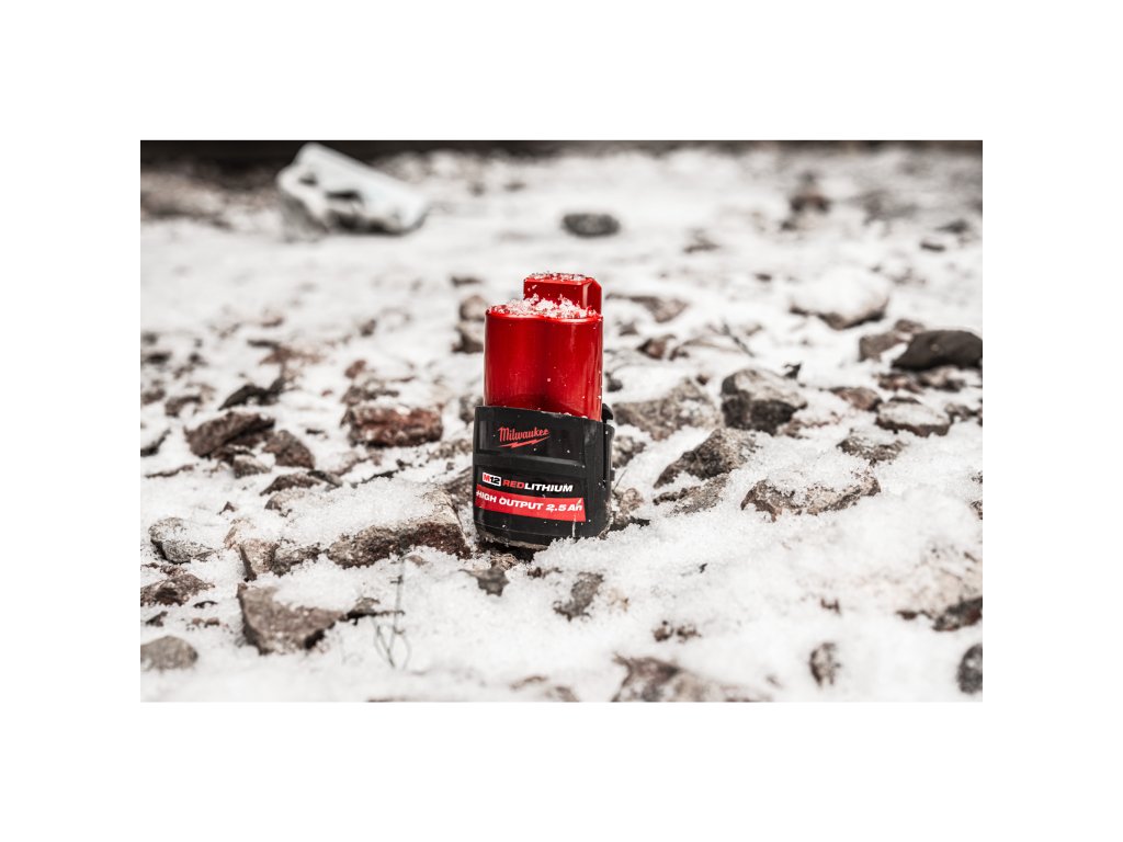 - Nový akumulátor M12™ 2.5 Ah HIGH OUTPUT™ poskytuje o 25% vyšší výkon než akumulátor M12 B2 REDLITHIUM™