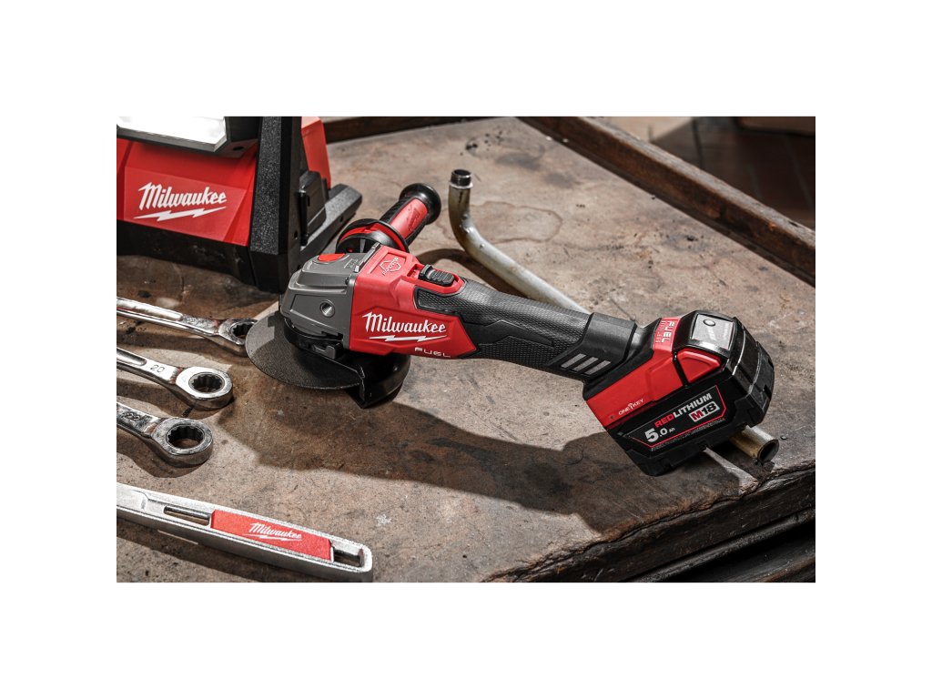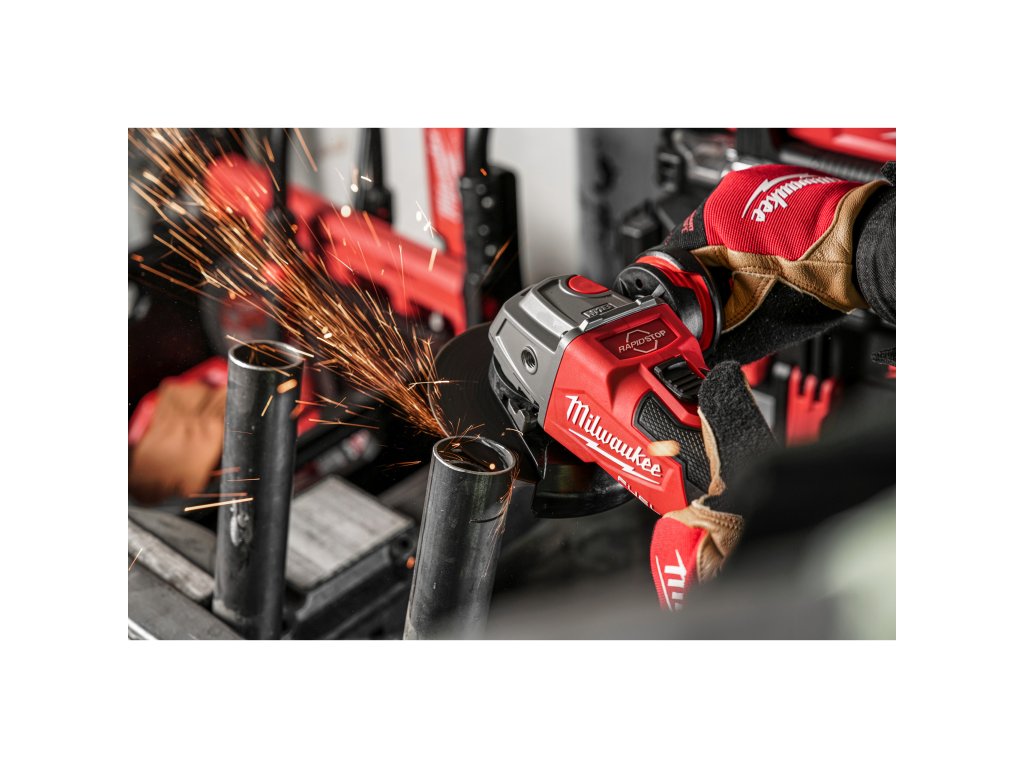 Úhlová bruska Milwaukee M18 ONE-KEY ONEFSAG125XB-0X přináší stejně silný výkon jako 1200 W síťová bruska.- RAPIDSTOP™ pro nejrychlejší zastavení kotouče za méně než 2 sekundy a nejlepší ochranu uživatele.