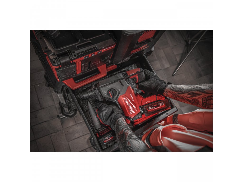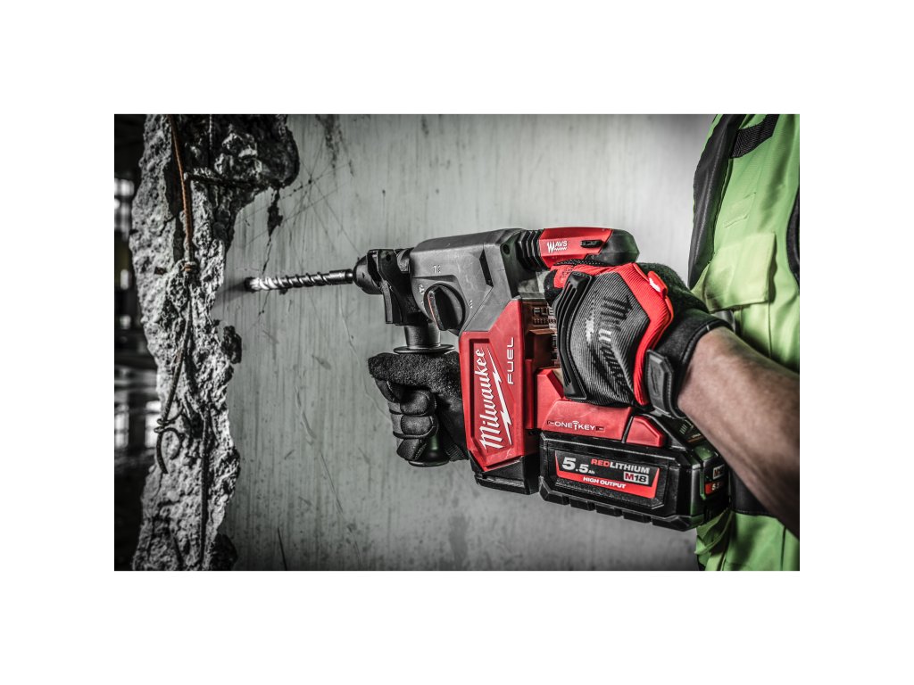 Kombinované kladivo Milwaukee M18 ONEFHX je nejrychlejší vrtací kladivo ve své třídě vedoucí ke zvýšení produktivity.- Výkonný příklepový mechanismus dodává příklepovou energii 2,5 J při nízkých vibracích 12,9 m/s2.