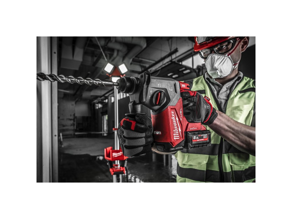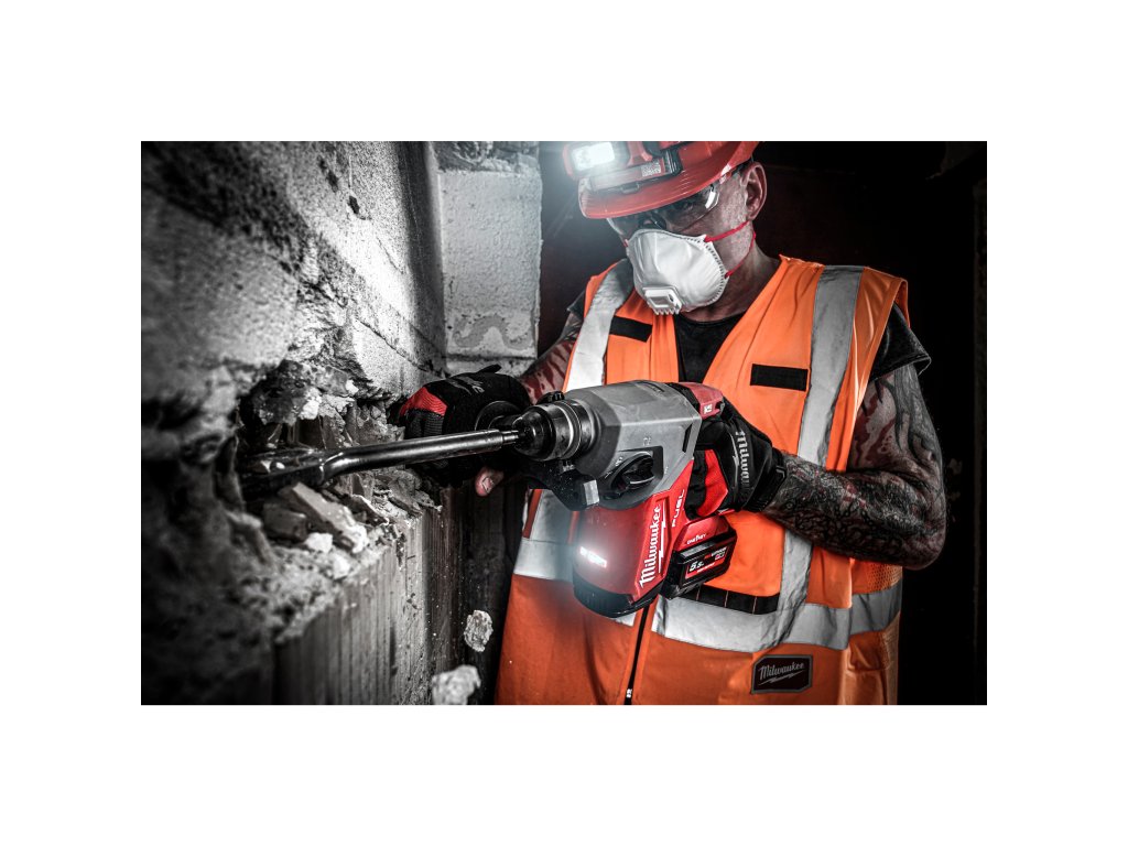 Nejrychlejší vrtací kladivo ve své třídě Milwaukee M18 ONEFH vedoucí ke zvýšení produktivity s výkonným příklepovým mechanismem dodává energii příklepu 2,5 J při nízkých vibracích 12,9 m/s?.- Vyvrtá až 125 otvorů ?10 x 50 mm na jedno nabití akumulátoru M18™ HIGH OUTPUT™ 5,5 Ah.