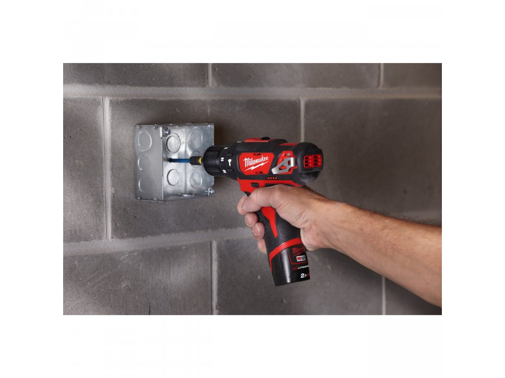 Akumulátorová příklepová vrtačka Milwaukee® M12 BPD o délce 190 mm, která je ideální pro práci ve stísněném prostoru. REDLINK™ ochrana proti přetížení chrání nářadí i akumulátor před extrémním namáháním.- Vysokovýkonná kompaktní příklepová vrtačka Milwaukee® o délce 190 mm, která je ideální pro práci ve stísněném prostoru