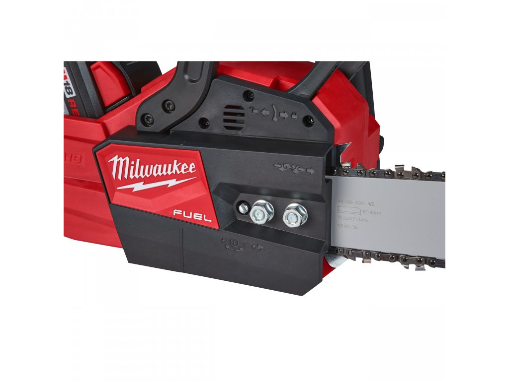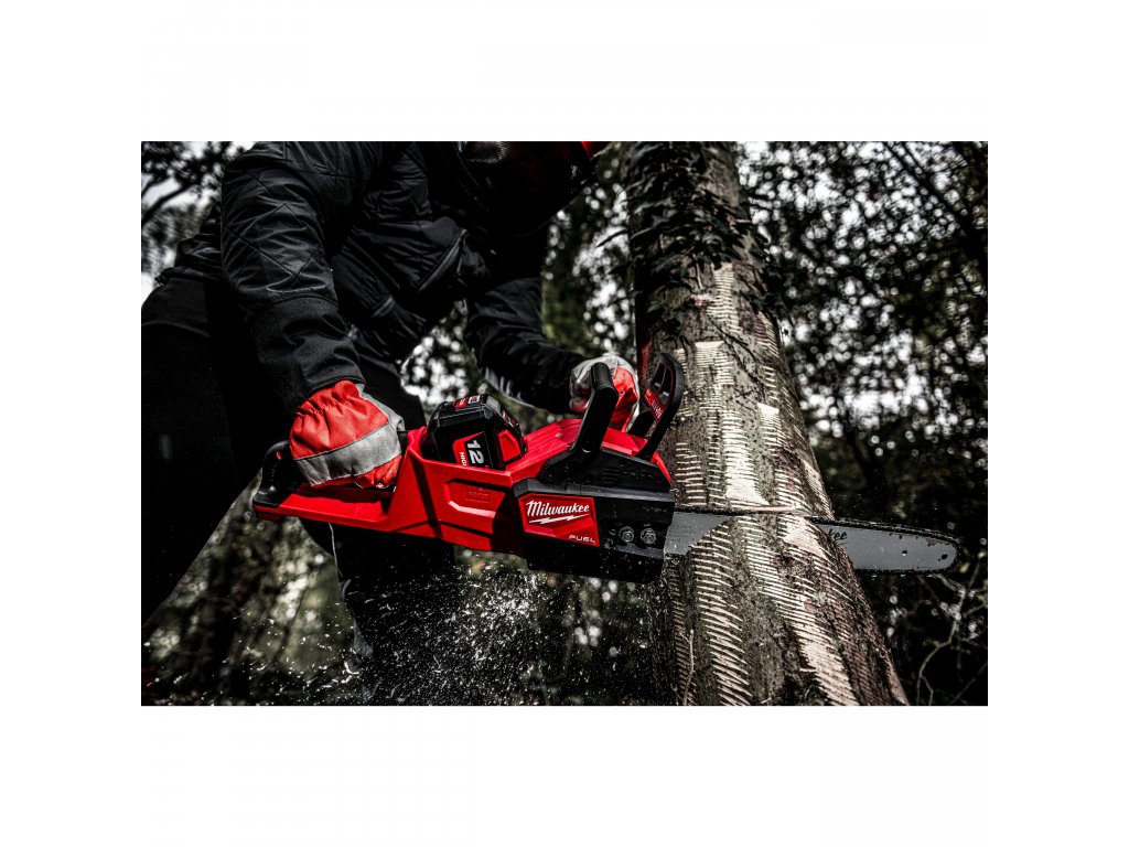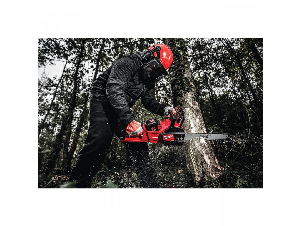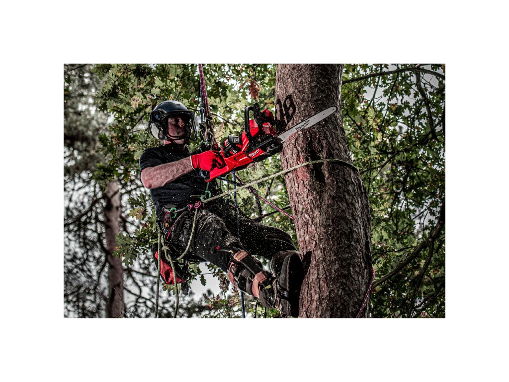 Akumulátorová řetězová pila Milwaukee M18 FCHS má sílu, která překonává v nejnáročnějších aplikacích benzínové řetězové pily.- Technologie FUEL™ umožňuje pile udržet rychlost při těžkém používání bez zablokování, což jí umožňuje překonat benzínové motorové pily až o objemu 40 ccm3