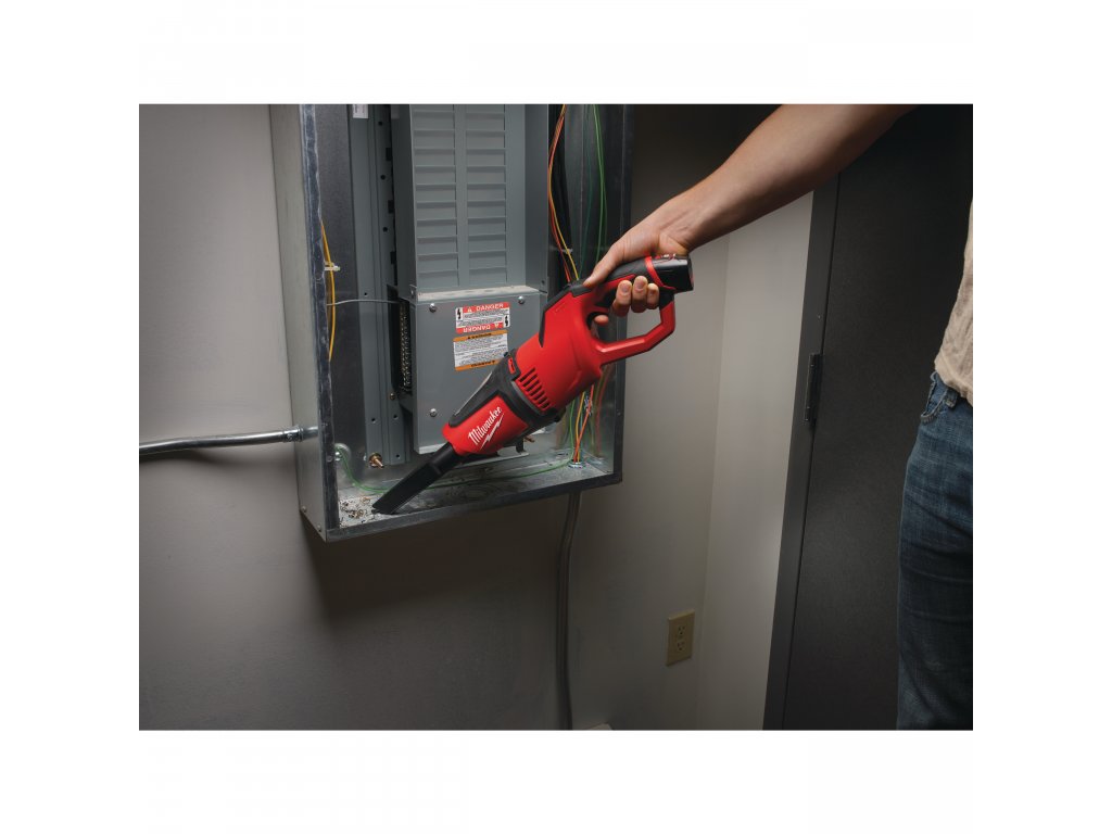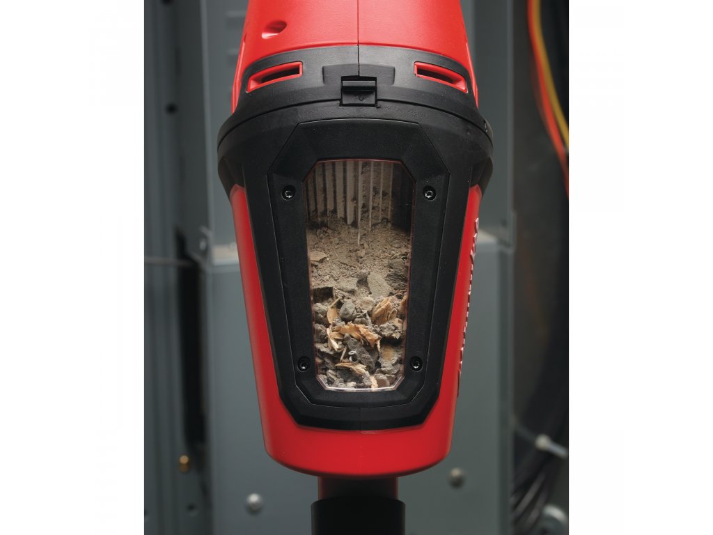 Akumulátorový ruční vysavač Milwaukee M12 HV má vynikající sací výkon na odsávání kovového, dřevěného a standardního odpadu.- Průhledné kontrolní okénko ukazuje stav naplnění.