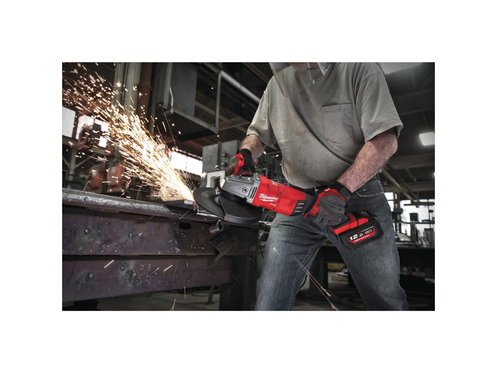 Aku úhlová bruska 230mm s kolébkovým spínačem MILWAUKEE M18 FLAG230XPDB poskytuje potřebný výkon pro broušení, je lehčí než nářadí s napájecím kabelem a zvládne až 68 řezů do ocelové trubky z nerezu s průměrem 42 mm na jedno nabití.- Bezuhlíkový motor nové generace POWERSTATE™, elektronika REDLINK PLUS™ a akumulátor REDLITHIUM™-ION HIGH OUTPUT™ 12,0 Ah poskytují vynikající výkon, odolnost a dobu provozu ve vysoce náročných aplikacích