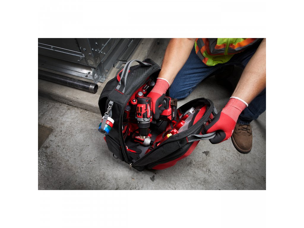 Batoh na nářadí Milwaukee je součást modulárního úložného systému PACKOUT™. Je vyroben z balistického materiálu 1680D, který zaručuje odolnost na pracovišti.- Celkem 48 kapes. Kapsa na přístroje chráněná vrstvou Hardshell.