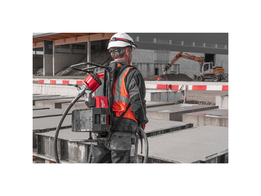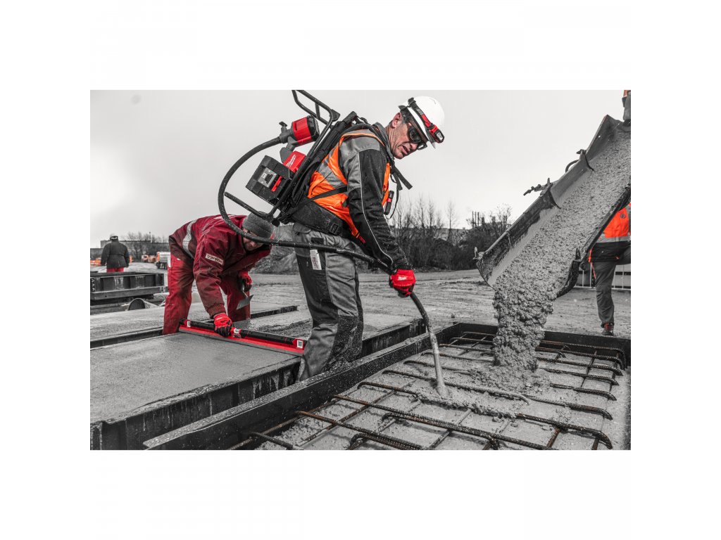 Batohový vibrátor na beton MX FUEL™ je ideálním řešením při práci ve větších oblastech, přičemž přináší stejný výkon jako síťové nářadí, a to bez starostí s pokládkou kabelů nebo hledáním síťové zásuvky na stavbě.- Má dostatečný výkon k tomu, aby zatlačil hlavu o průměru 63 mm rychlostí více než 11 200 vibrací za minutu pro optimální zpevnění i toho nejtvrdšího betonu.