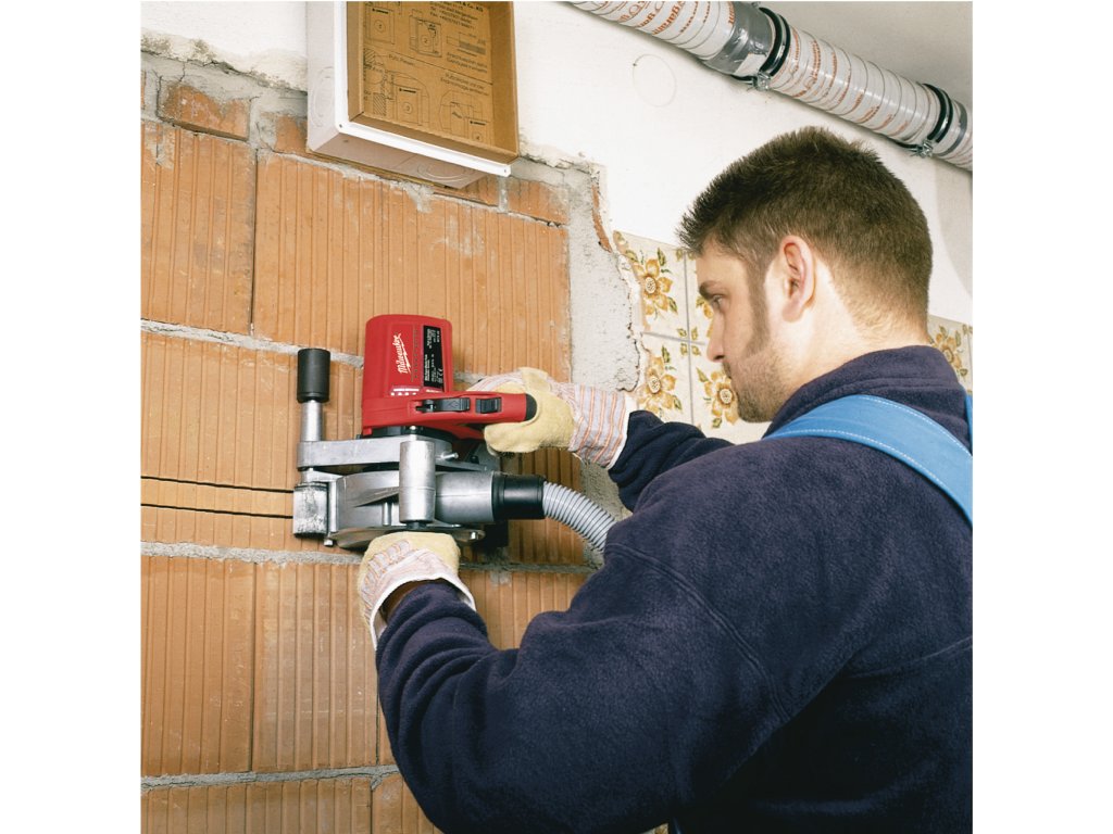Drážkovací frézka na zdivo Milwaukee WCS 45 s výkonným 1900 W motorem. Ochrana proti přetížení. Stavitelná hloubka a šířka drážky. TILT-LOK madlo. Softgrip - ergonomická rukojeť.- Připojení na vysavač