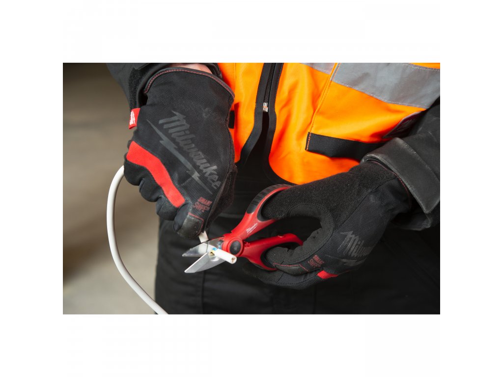 Elektrikářské nůžky Milwaukee s drážkou pro stříhání kabelů pro větší efekt páky. Zaoblená drážka umožňuje snadné stahování izolace. 4932478620- Krimpování koncovek na kabely až do 6mm.