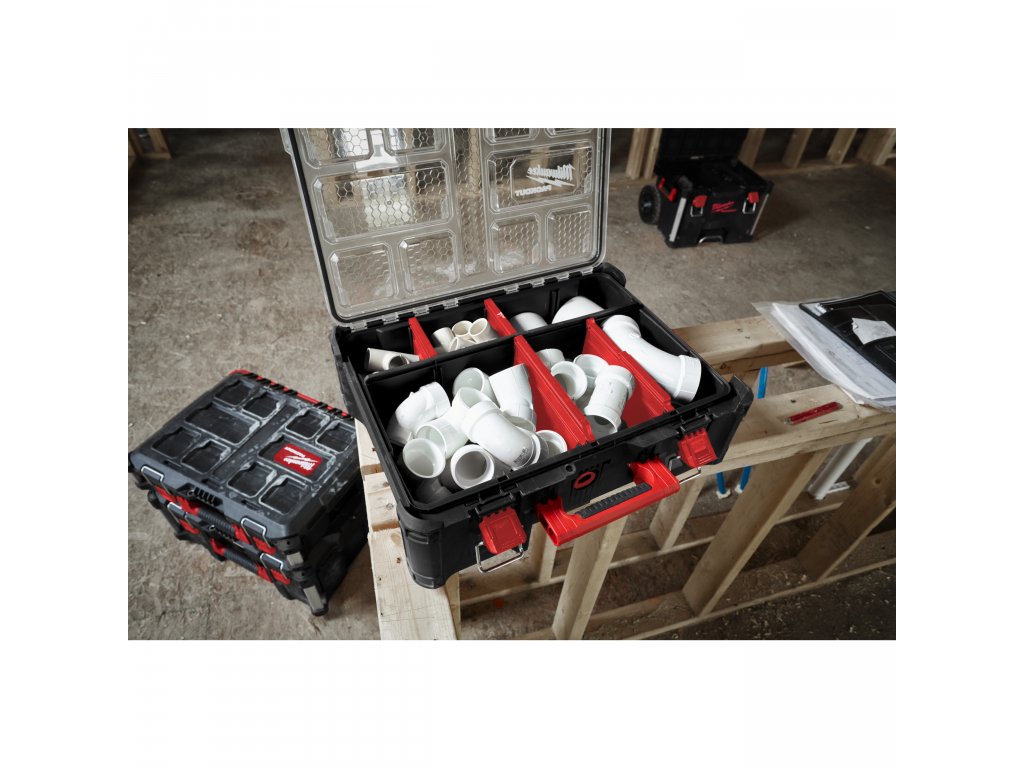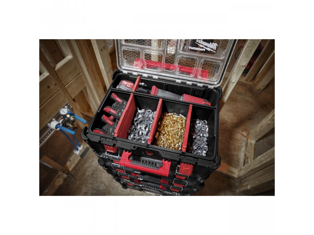 Hluboký organizér Milwaukee Packout o 50% vyšší než standardní organizér PACKOUT™ - ideální pro uložení nářadí, akumulátorů, nabíječek, většího příslušenství a dalšího vybavení.- Rozdělovače Quick Adjust umožňují uživatelům přizpůsobit prostor podle svých potřeb