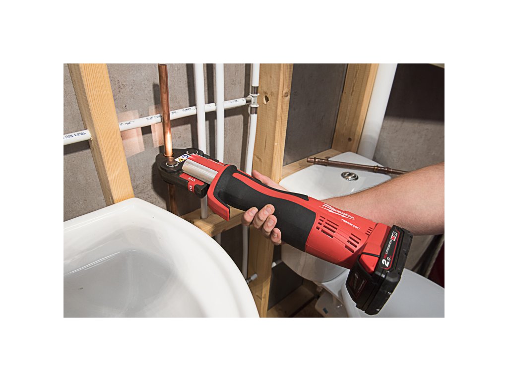- Umožnuje lisovat až do průměru 108 mm měděných a 110 mm vrstevných trubek.
