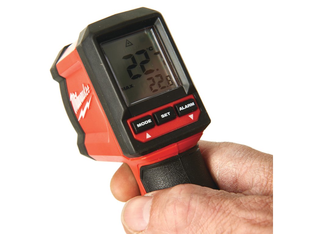 Infračervený teploměr Milwaukee TEMP-GUN 2267-40 s poměrem měření 10 : 1 – plochu 1 metru změří z 10 metrové vzdálenosti.- Rozsah teplot od -30° C do 400° C.