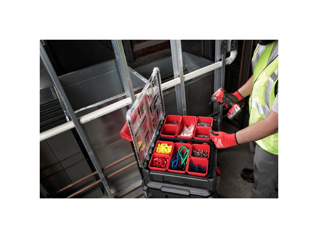 Kontejner 10x10cm Milwaukee pro systém Packout zajišťuje snadný a rychlý přístup ke všem nástrojům.- Nejbezpečnější a snadná montáž s mechanismem click & lock.