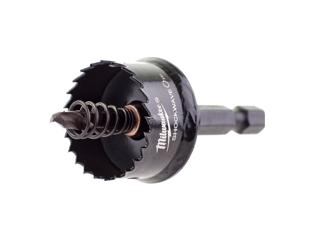 Kruhová pilka Milwaukee SHW, která má 8 zubů na Tpi = čisté otvory bez třísek. Tenká stěna - tloušťka 0,6 mm = menší odpor, až o 40% vyšší rychlost.- Mělké tělo optimální pro tenké kovy.