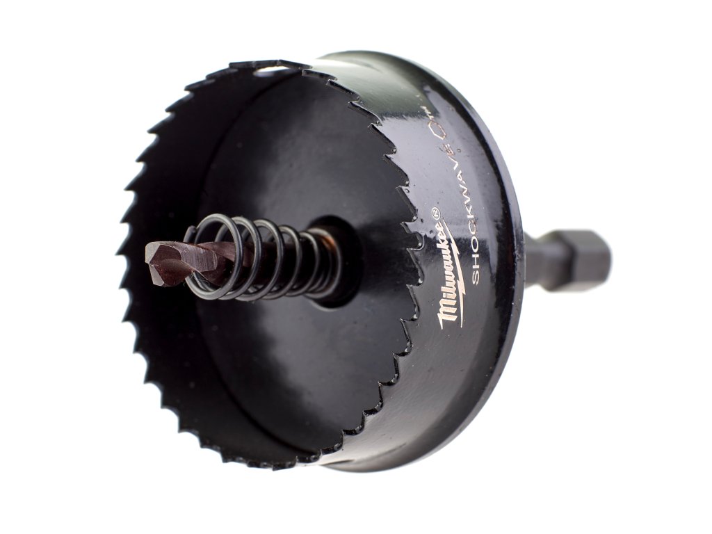 Kruhová pilka Milwaukee SHW, která má 8 zubů na Tpi = čisté otvory bez třísek. Tenká stěna - tloušťka 0,6 mm = menší odpor, až o 40% vyšší rychlost.- Mělké tělo optimální pro tenké kovy.