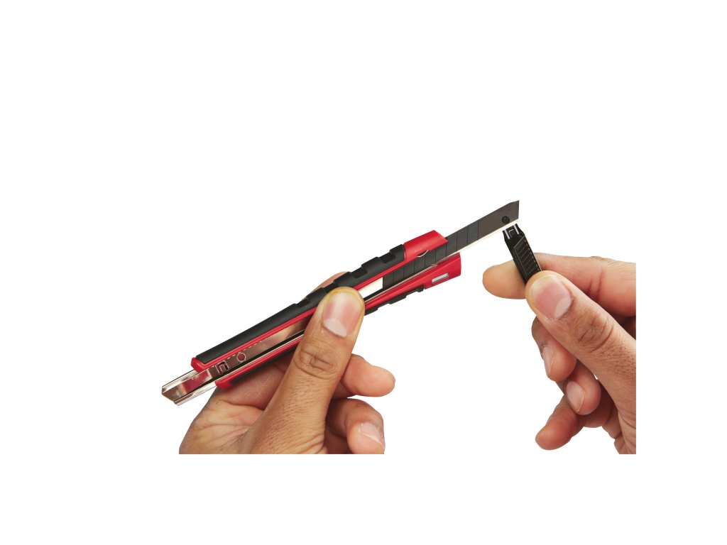 Odlamovací nůž MILWAUKEE s kovovým zámkem pro maximální trvanlivost a delší životnost. Odlamovací přihrádková objímka odlamuje segmenty ostří.- Automatický kluzný zámek** pro rychlejší seřízení ostří