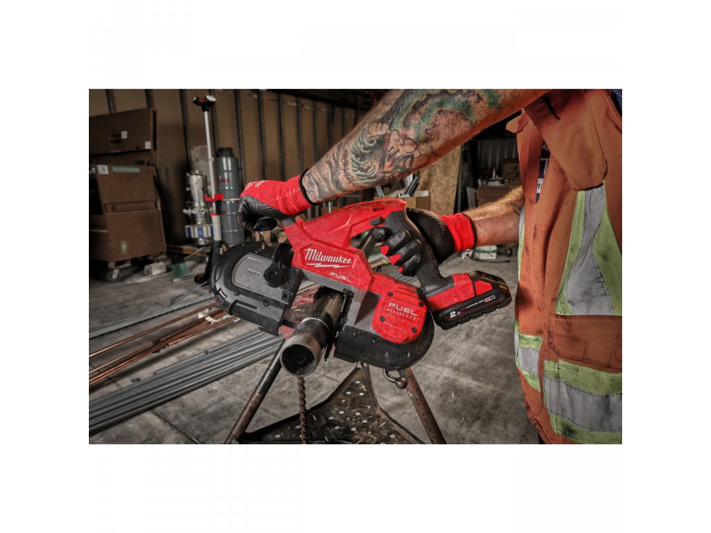 Pásová pila Milwaukee M18 FBS85 poskytuje o 20% rychlejší řezání ve srovnání s předchozím modelem.- Velká řezná kapacita pro průměr až 85 mm.