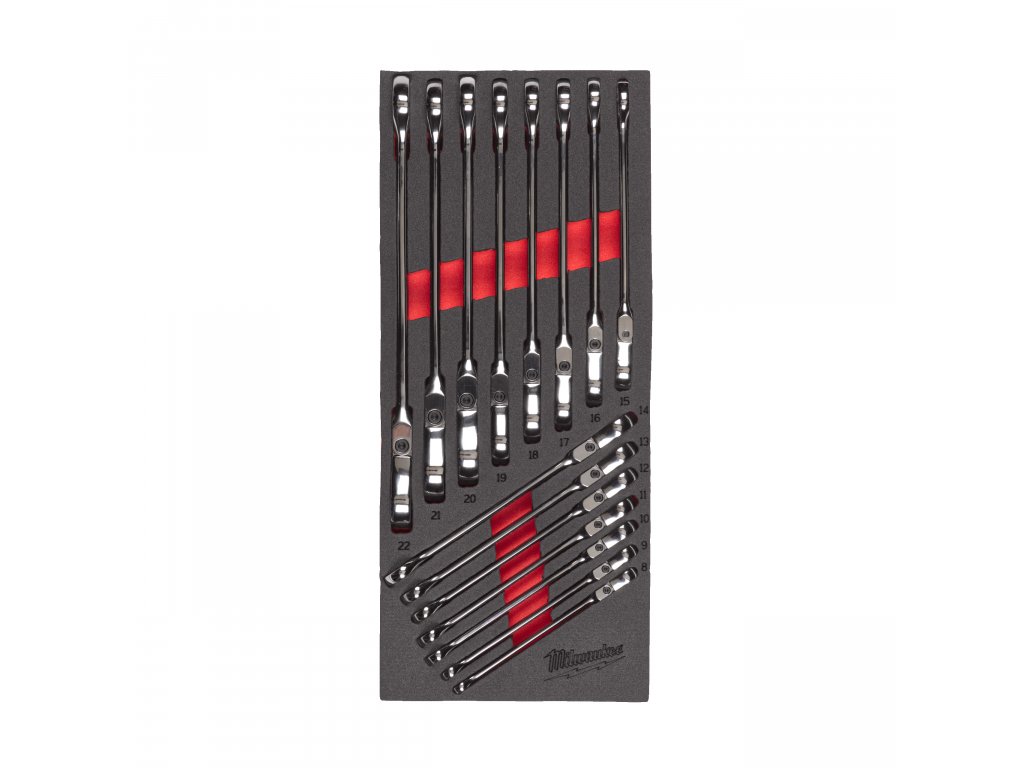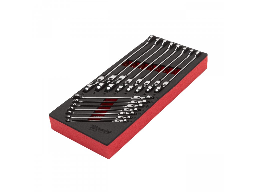 MILWAUKEE Pěnová vložka se sadou ráčnových klíčů s kloubovou hlavou MAX BITE™ 15 ks