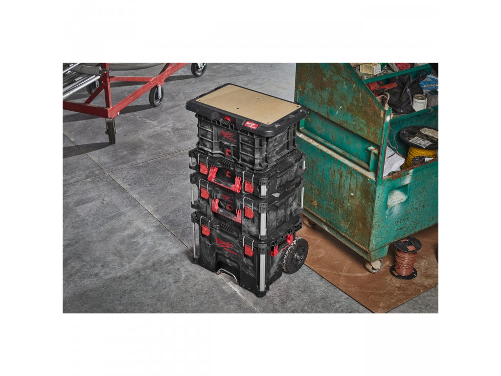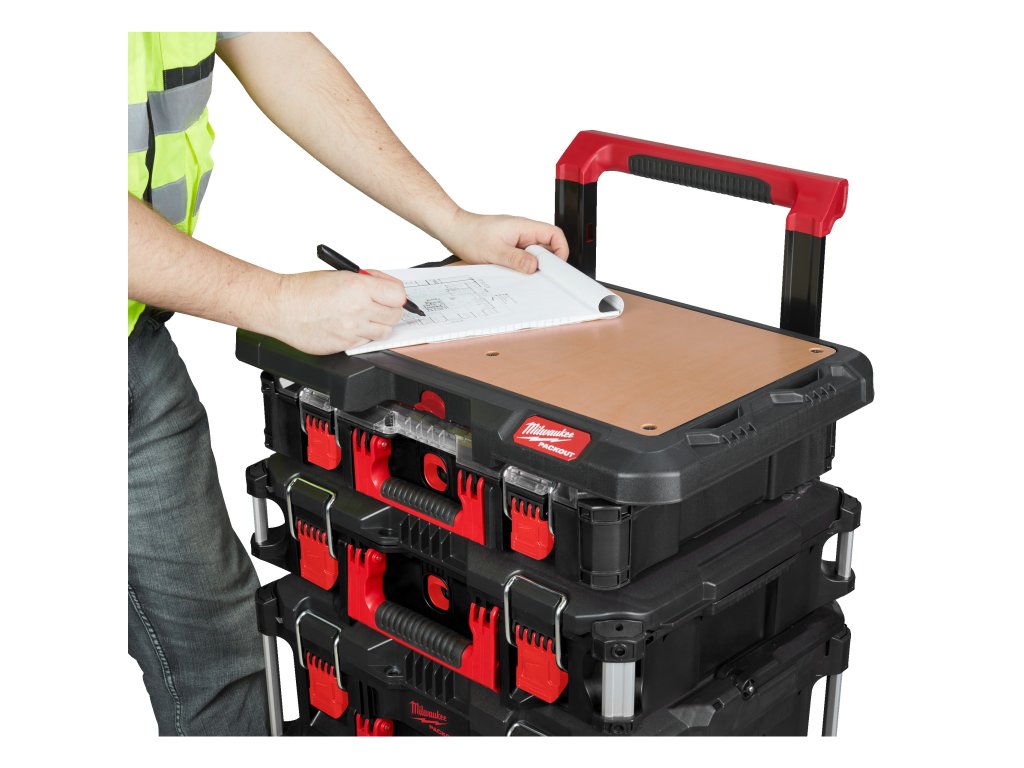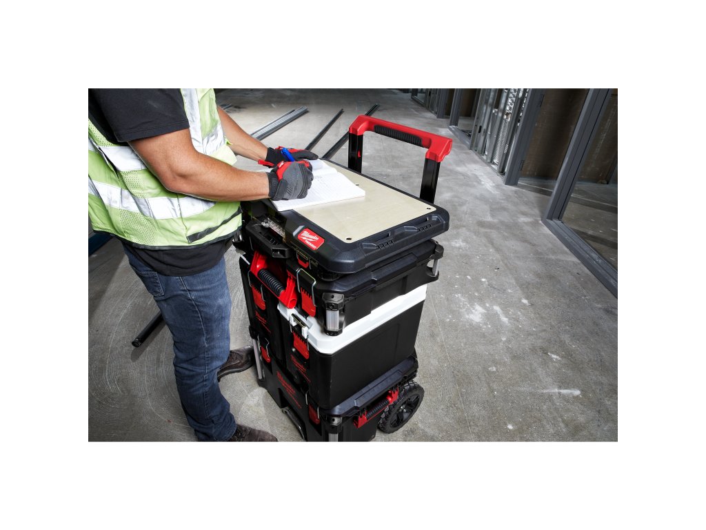 Pracovní deska Milwaukee Packout námořní překližka poskytuje hladký povrch pro lehké montážní práce, psaní, skicování nebo práci na notebooku.- Povrch připravený pro upevňování umožňuje snadnou montáž běžných pracovních materiálů a větších druhů nářadí na horní části skladovacího systému PACKOUT™.