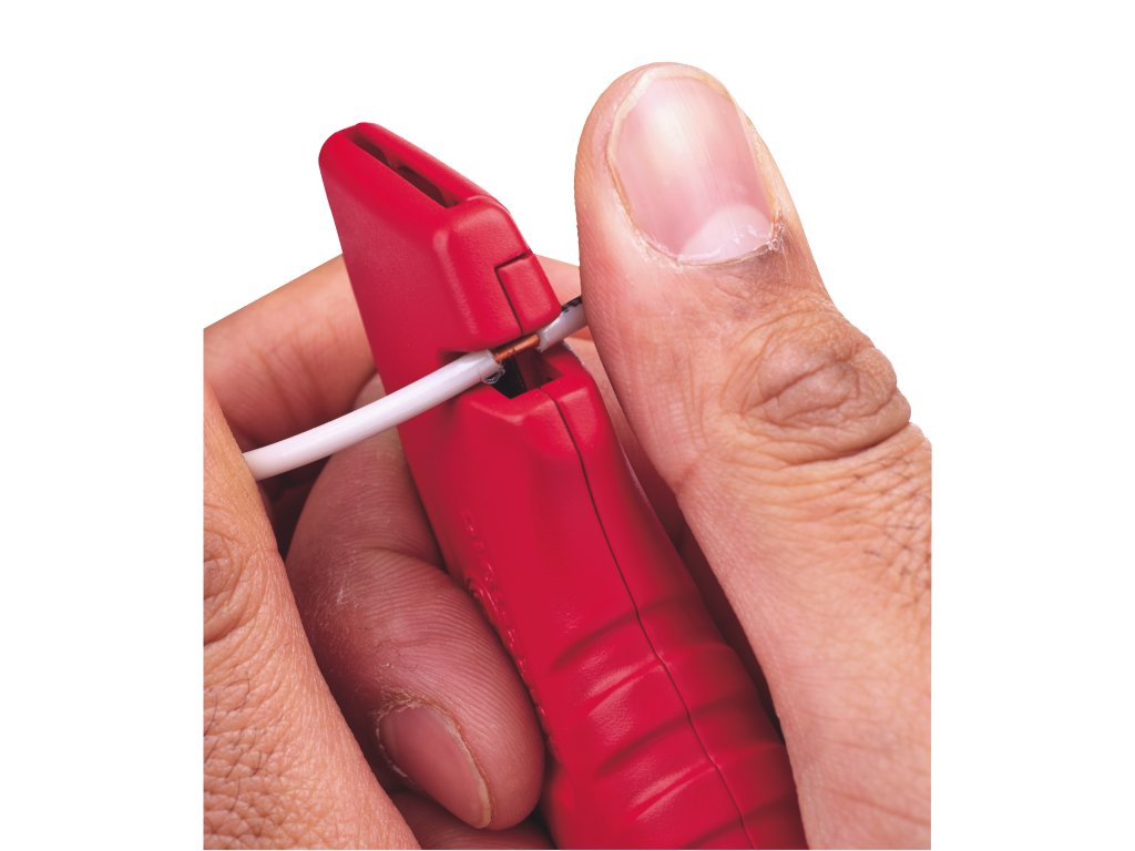 - Odizolování drátů: Odstraňuje nutnost hledat v tašce další nástroj. Seřízne drát do Ø 5 mm²