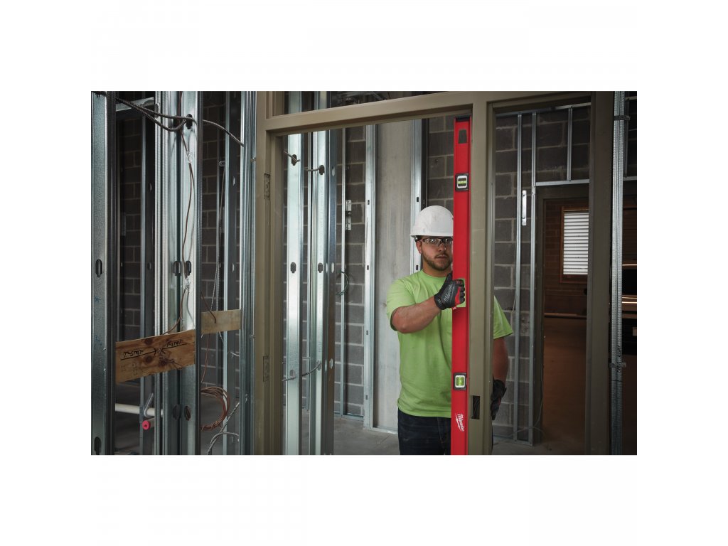 Lehká vodováha Milwaukee s vyztuženou hliníkovou konstrukcí a magnetickou hranou, která umožňuje uvolnění rukou při práci s kovy.- Přesnost až do 0,029° (0,0005 ?/in, 0,5 mm/ m) v normální i obrácené poloze.