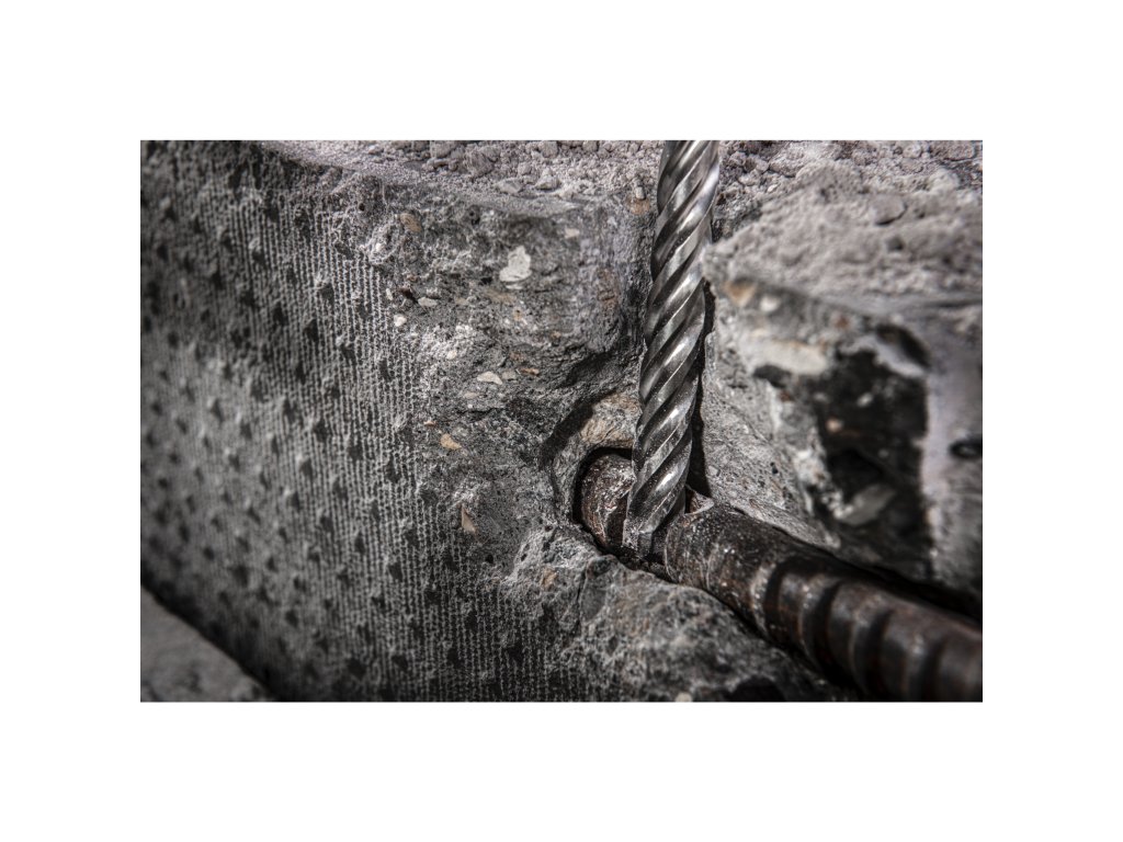 Vrták SDS-Plus do betonu Milwaukee MX4 s kompaktními usazenými karbidovými břity se středicím hrotem zaručuje snadné počáteční navrtávání a výjimečnou životnost.- Čtyři symetrické řezné hrany v odstupech 90° zaručují dokonale kulaté díry pro upevňování hmoždinek a redukci zasekávání vrtáku při kontaktu s armovací tyčí. Vysokokapacitní spirála zajišťuje optimální odvod prachu.
