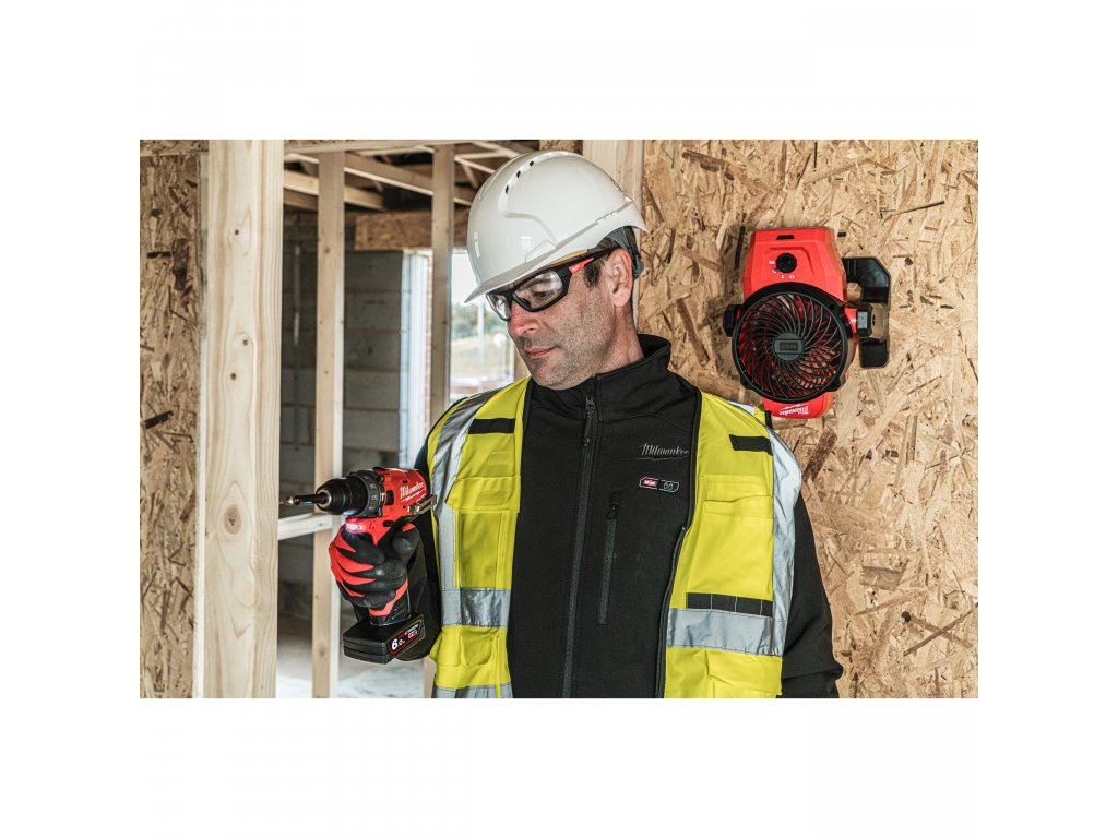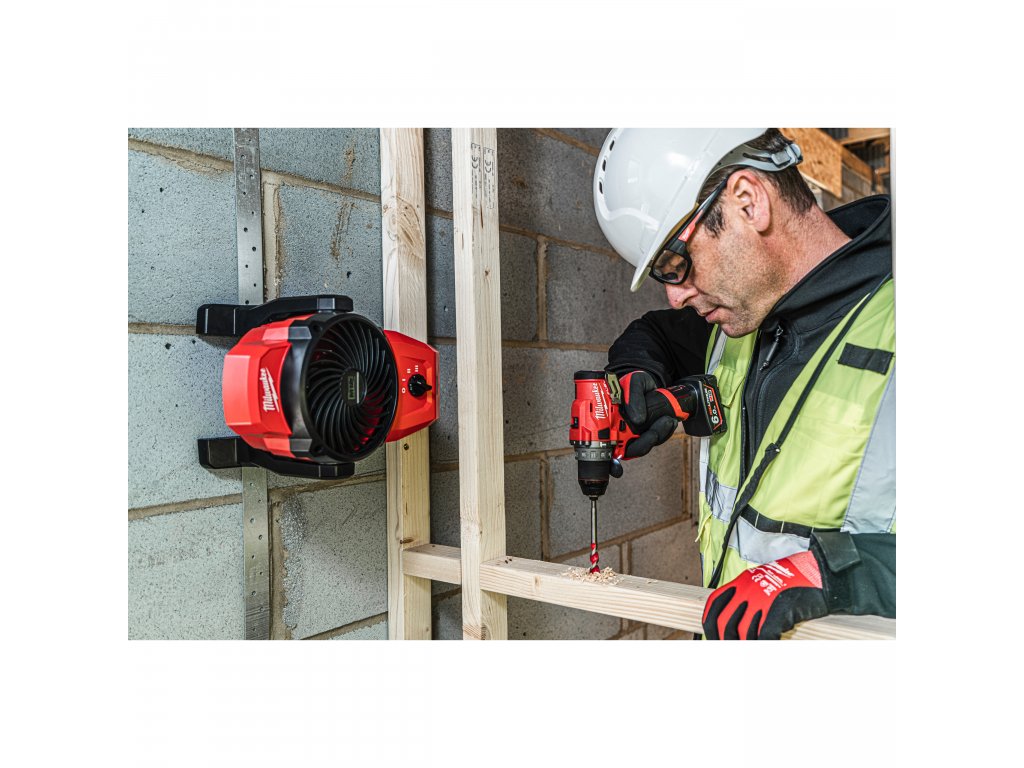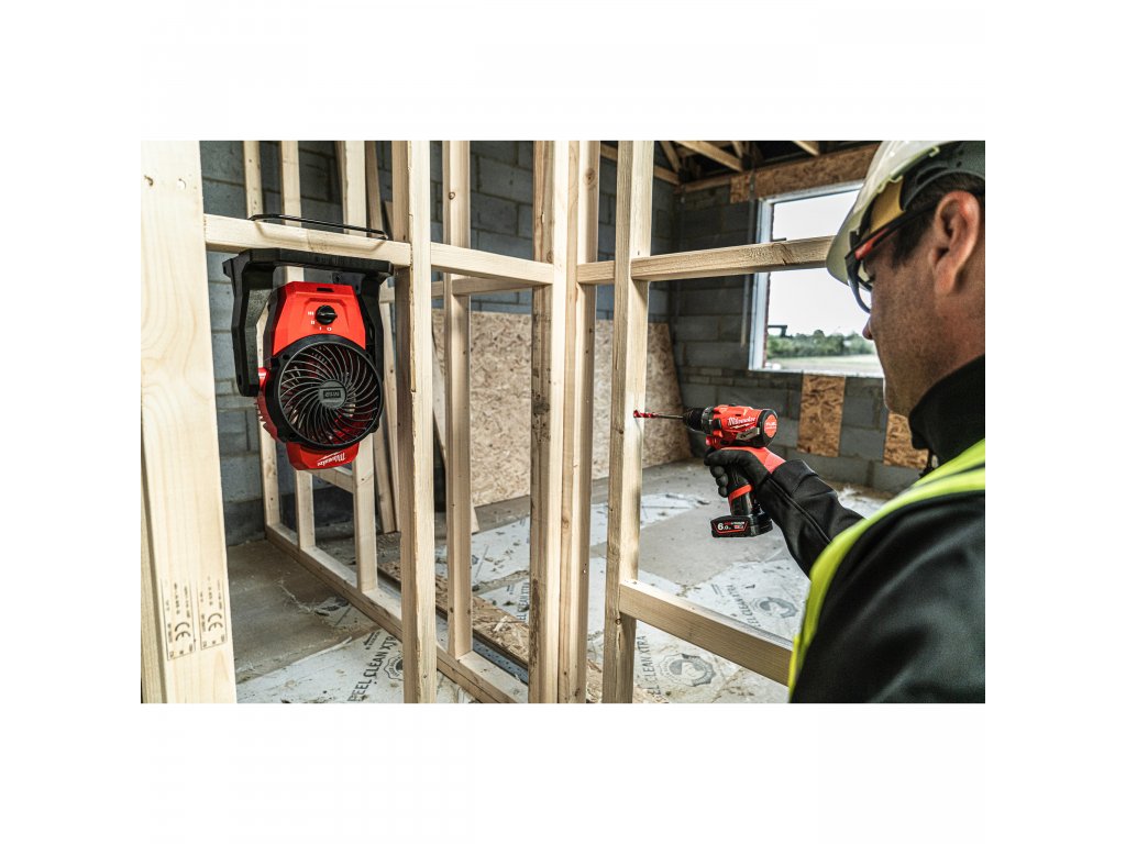 Vzduchový ventilátor Milwaukee AF s třírychlostním nastavením pro optimální proudění vzduchu až do 22,53 km/h s vysoce účinným průměrem lopatky 150 mm generuje maximální rychlost proudění vzduchu 680 m/min.- Otočení hlavy o 360° umožňuje neomezený směr proudění vzduchu.