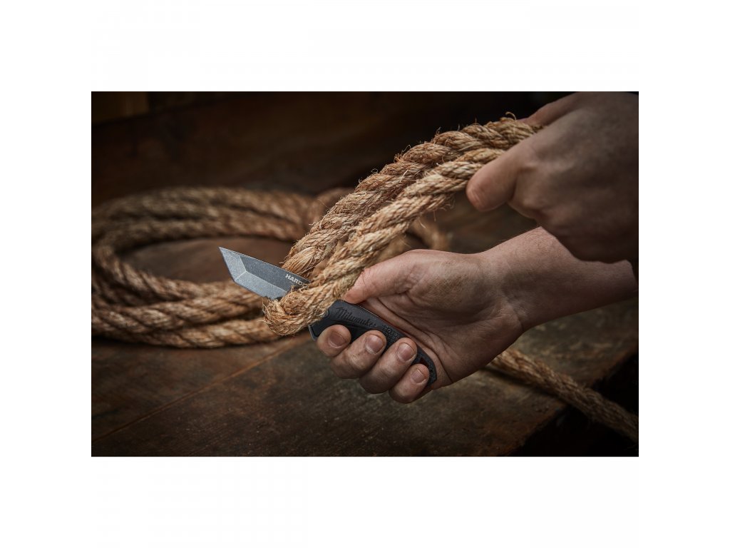 Špičková ocelová čepel D2 poskytuje lepší odolnost proti korozi. Vysoká pevnost a odolnost proti opotřebení, zůstává déle ostrý.- Hladká / zoubkovaná čepel 75 mm a propichovací špička. Ideální protržení materiálu a špička umožňuje kontrolované propíchnutí.