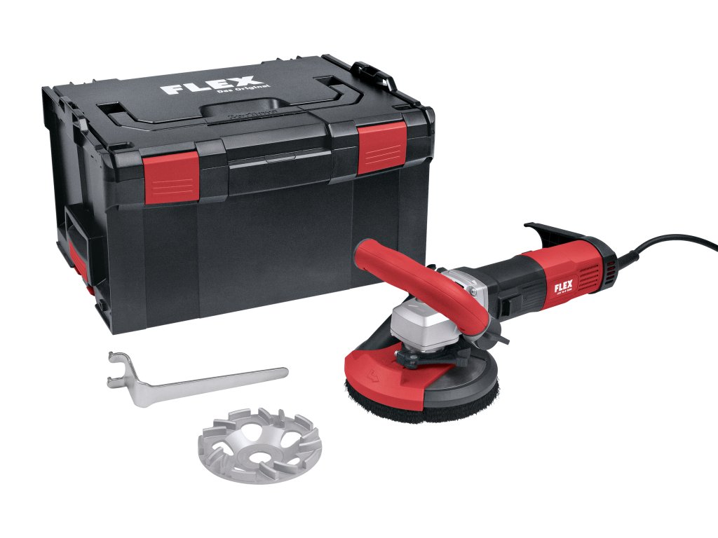 Sanační bruska s variabilními otáčkami pro bezprašné broušení až do rohů, 125 mm, Mikroprocesorová elektronika s pozvolným rozběhem, ochranou proti opětovnému spuštění po výpadku proudu, kontrolou teploty, ochranou proti přetížení, CDC-elektronikou pro udržování konstantních otáček, Spolehlivý vysoce výkonný motor s 1600 W s dostatečnou rezervou, Odsávání prachu: chrání před nepříjemným prachem, snižuje opotřebení kotoučů, udržuje póry betonu pro nové vrstvy otevřené., Anti-Kickback - vypne motor při zablokování kotouče, Ochranný kryt: s výkyvným segmentem na broušení až ke stěně a výškově nastavitelný pro uzpůsobení dle výšky kotouče pro optimální odsávání prachu, S přídavným, plynule nastavitelným, ergonomickým držadlem se sníženými vibracem pro optimální ovládání a vedení stroje, Pro pevné připojení hadice. FLEX Clip-spojkou pro Ø 32 mm koncovku je obsažen v základním vybavení, Aretace vřetene, zapuštěné tlačítko aretace na ochranu před nechtěným dotekem, Variabilní otáčky pro minimalizaci prachu při převisu nástroje, pro lepší kontrolu jemnějšího opracování s menším tlakem, např. v oblasti rohů a při finálních úpravách povrchů, Ideálně vhodné pro opracování stěn, stropů a podlah. Efektivní a hospodárná práce díky optimálnímu odladění stroje a snímacího talíře, Diamantový brusný kotouč vhodný pro obroušení betonových desek, zbroušení zvětralého starého betonu, na tvrdé cementové omítky, na odstranění převisů po bednění, na vytvrzené vrstvy z epoxidových pryskyřic a sintrové vrstvy na betonu. Vysoký výkon při broušení a vyšší životnost díky novému tvaru segmentů. Optimální pro přípravu podkladů pro další úpravy.Doplňkové parametry